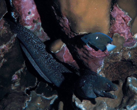 In the spring of 1998, a scientific team of divers visited Clipperton Atoll, an isolated hunk of coral rising out of the middle of the tropical Eastern Pacific. The trip, sponsored by the National Geographic Society and the Smithsonian Tropical Research Institute, was organized by Dr. Ross Robertson, whose original study of fish populations at the atoll in 1994 inspired the 1998 expedition. During 15 days of work, divers quantified the faunal diversity in a variety of habitats. Below are some of the images that emerged from the trip |
